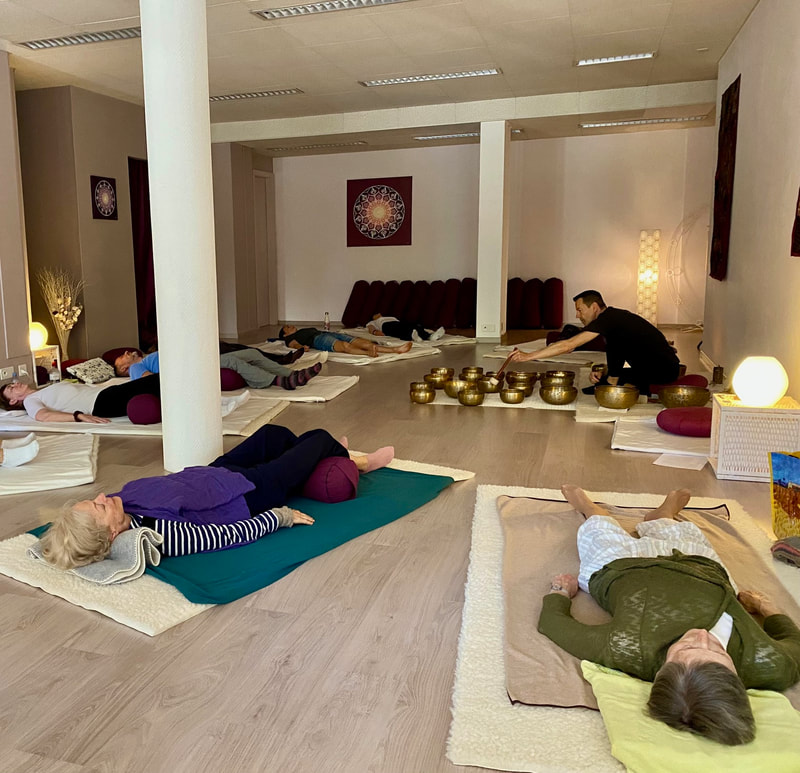 • Puis, guidé par les vibrations des bols chantants et d’autres résonances subtiles, laisse toi envelopper dans un bain sonore et méditatif…. Voyage intérieur t’ouvrant des portes invisibles et t’apaisant en profondeur.